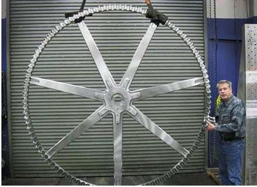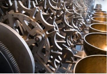 Een van de tandwielen. Alles is groot aan dit extreme object.